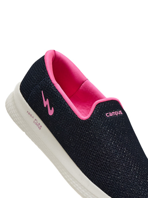 Highlight your style quotient with this pair of walking shoes for women from Campus. Made of a superior quality knitted mesh upper, these cool slip on feature a fitted closure, and a perfect shaped tip and phylon sole for flexibility. The foam insole provides comfortable movement to your feet and the non-abrasive feature ensures optimum surface traction.
