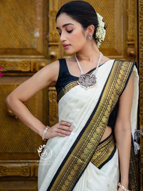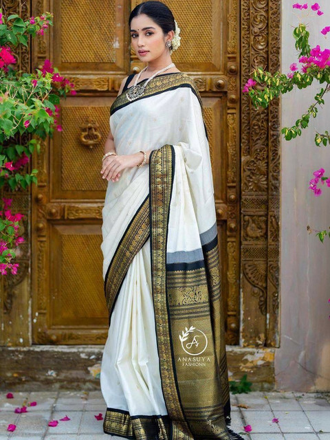 - Off white banarasi saree