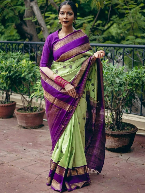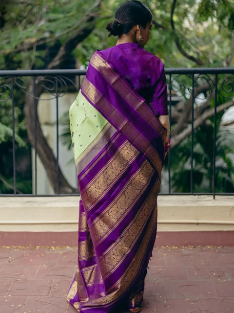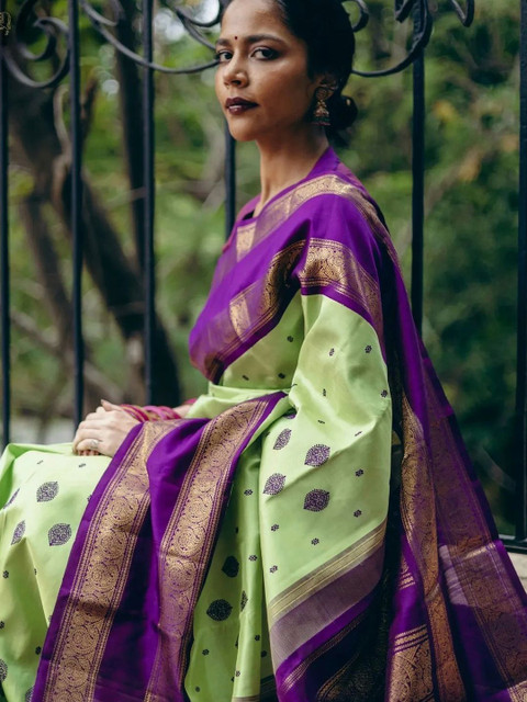 - Lime green banarasi saree