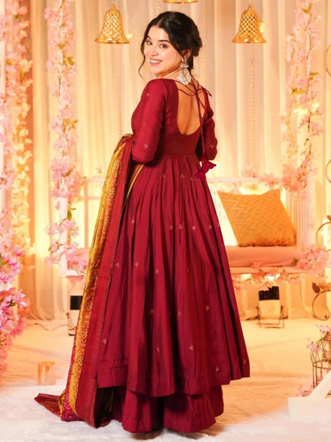 Maroon self design Kurta with Palazzos with dupatta