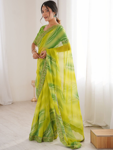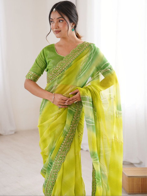 - Green and yellow saree