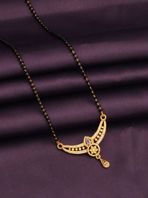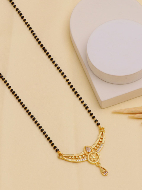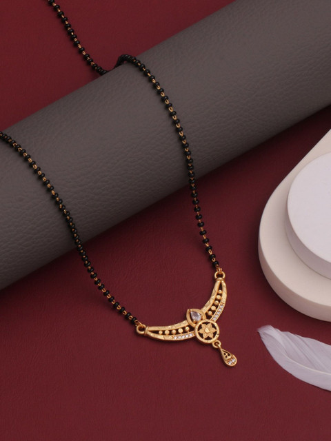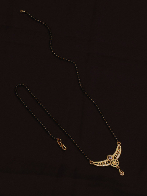 Gold-toned, black and white mangalsutra, has american diamond studded and beaded details
