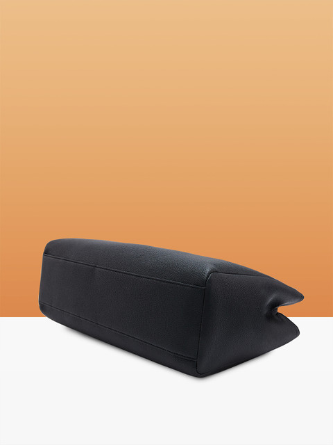 Black solid shoulder bag, has a zip closure