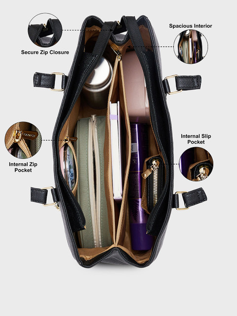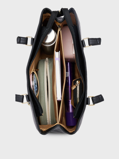 This stylish handbag from Caprese is a must-have addition to your outfit. For a chic work outfit, style this black piece with slick black jeans, a trendy top, and some platform heels.