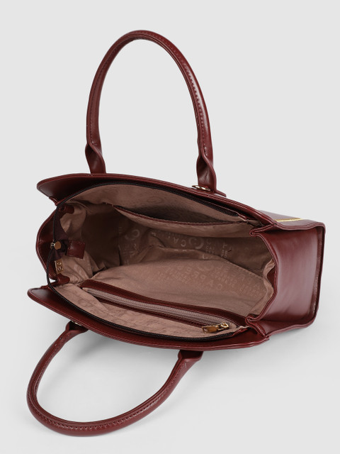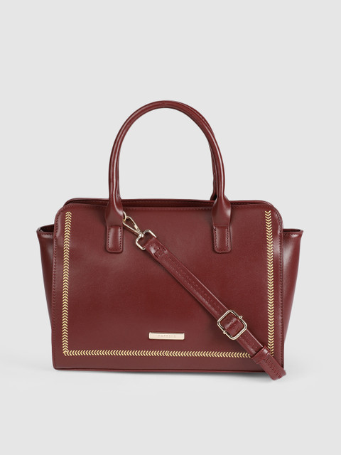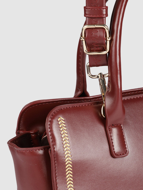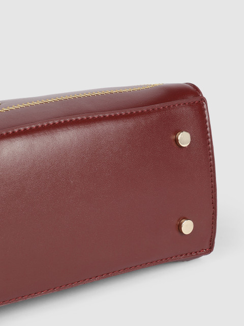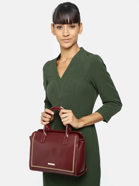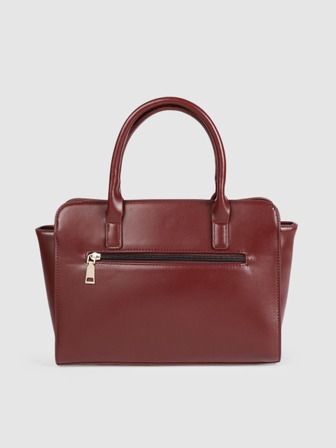 Maroon solid handheld bag, has a zip closure
