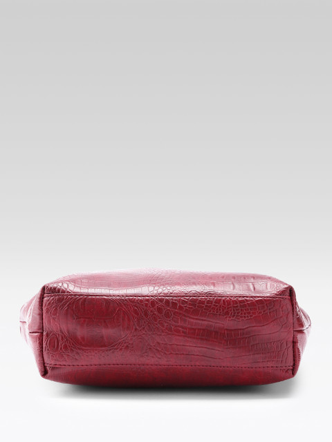 Burgundy textured shoulder bag 1 main compartment, has a zip closure, 1 external pocket, 2 inner pockets