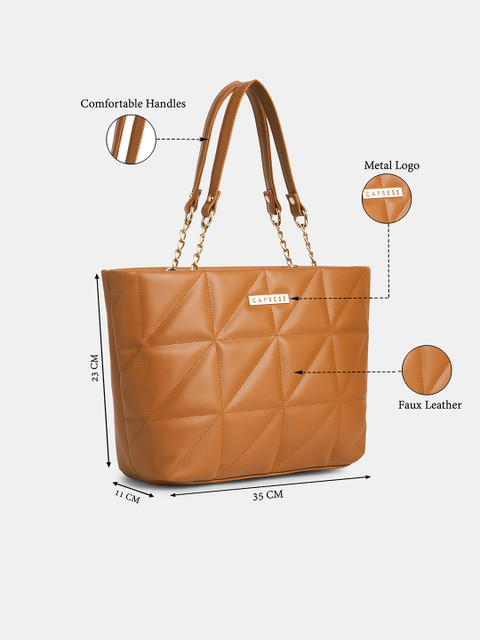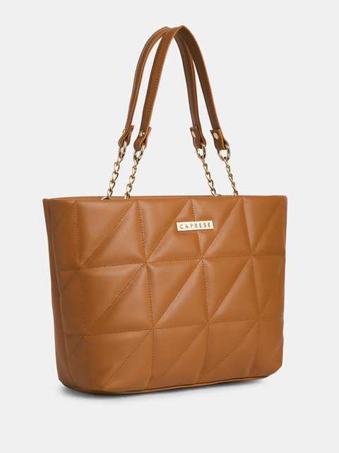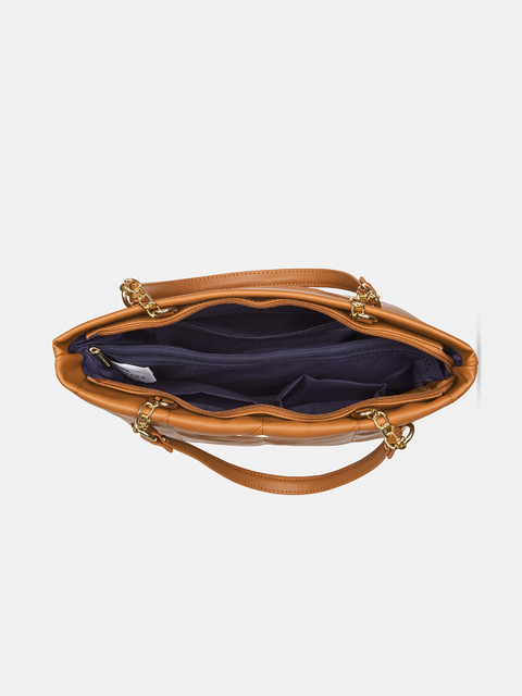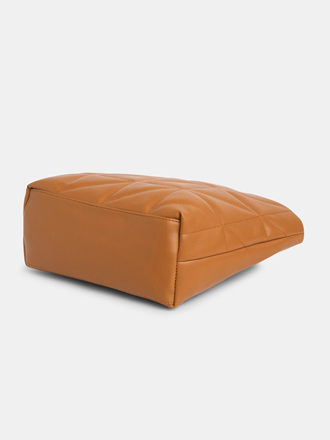 Tan textured shoulder bag, with quilted detail