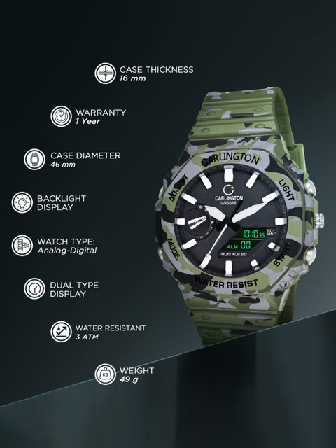 3 reviews for CARLINGTON Printed Dial & Analogue and Digital Watch CT 3322 Army