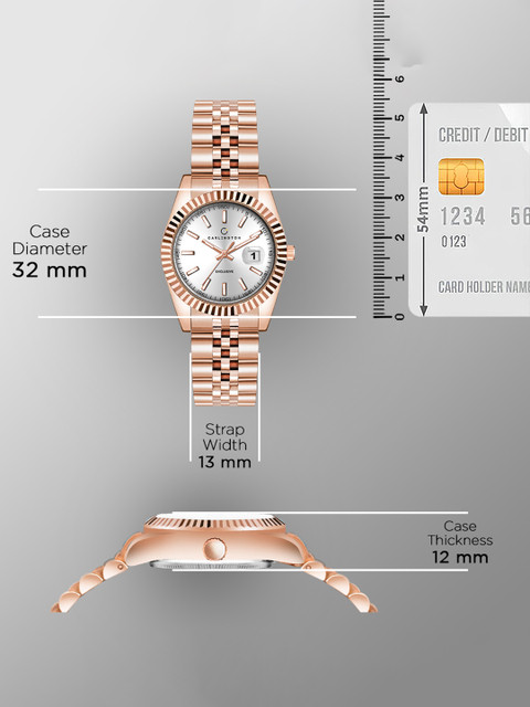 Dial style: white embellished round stainless steel dial