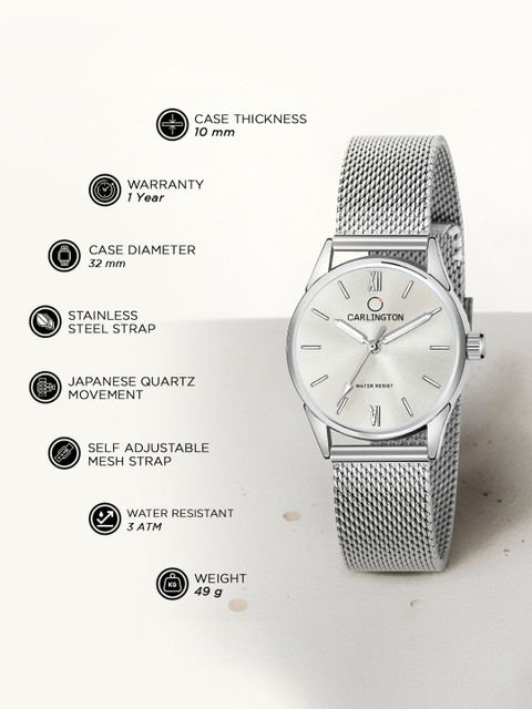 Strap Style: silver toned, bracelet style, stainless steel strap with a foldover