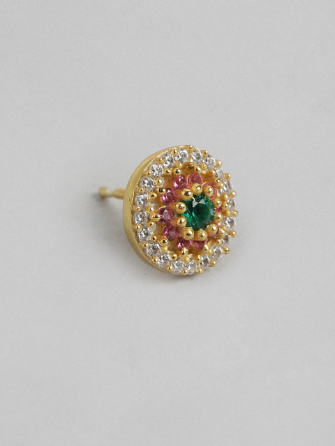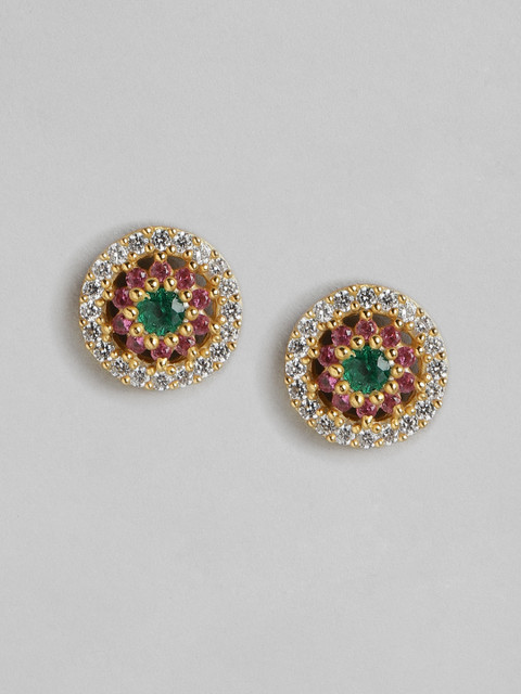 Gold-toned and multicoloured circular studs, gold-plated, has cubic zirconia