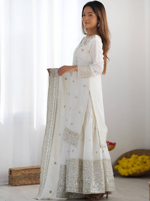 1 review for CARTYSHOP Women Ethnic Motifs Embroidered Regular Sequinned Kurta with Sharara & With Dupatta