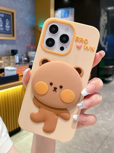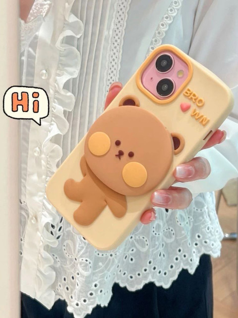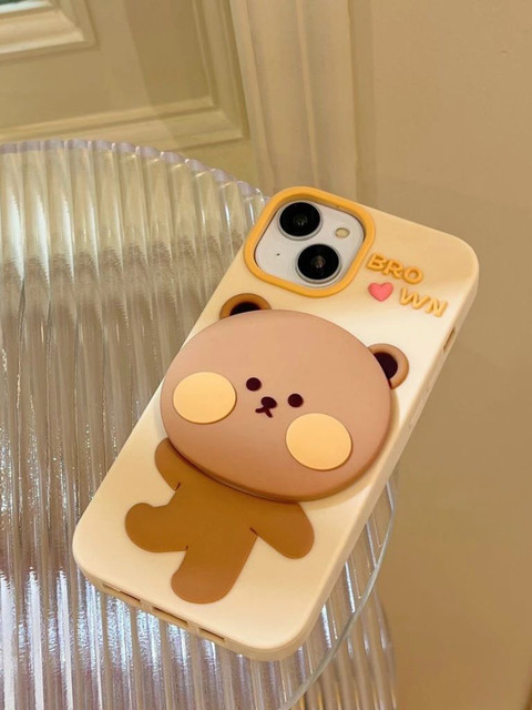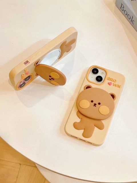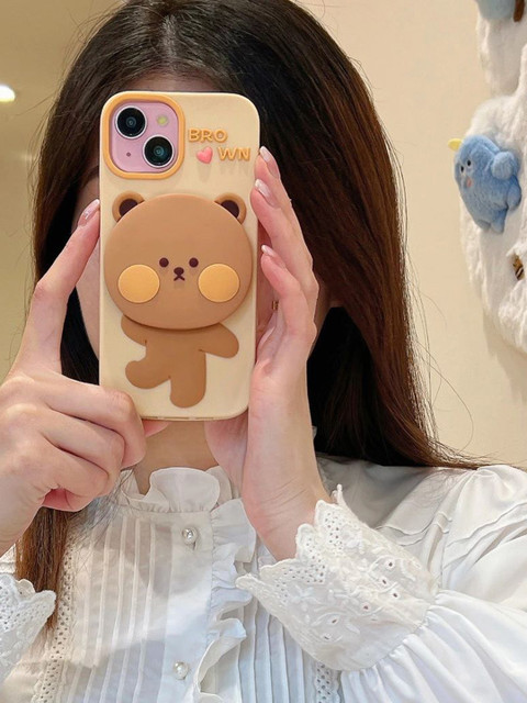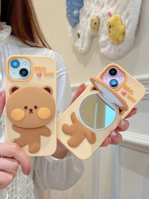 CASE CREATION iPhone 14 3D Teddy Bear Mirror Cartoon Stand Case Mobile Accessories