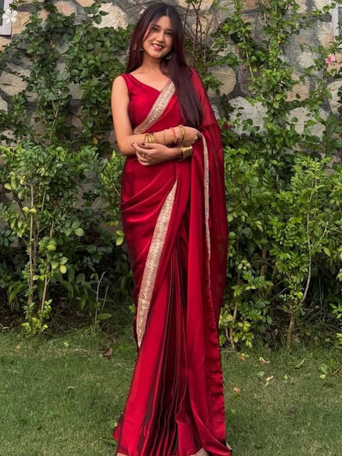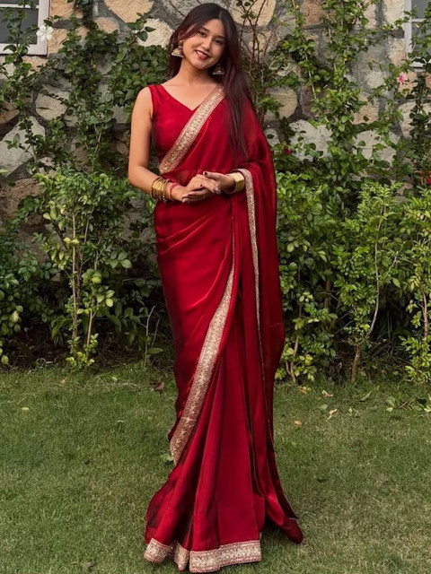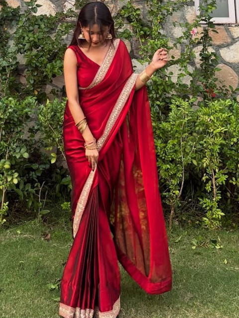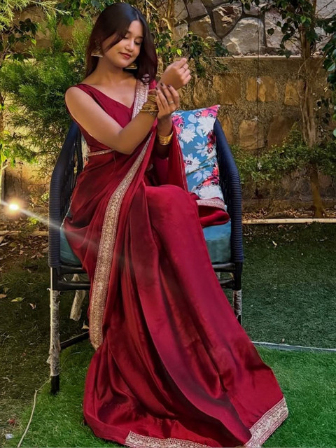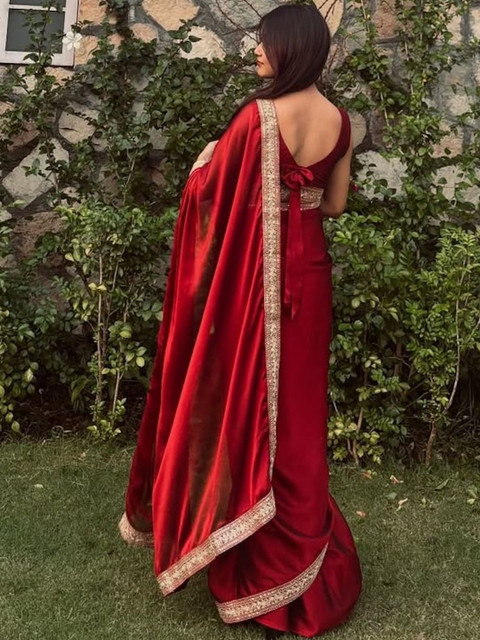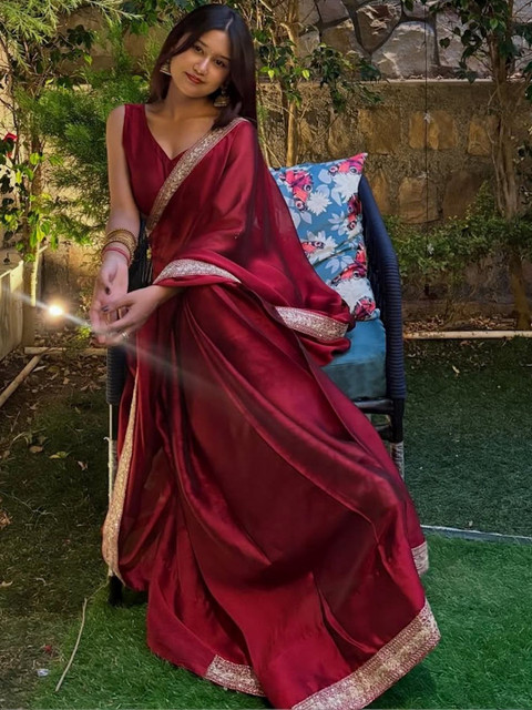 The blouse worn by the model might be for modelling purpose only. Check the image of the blouse piece to understand how the actual blouse piece looks like.