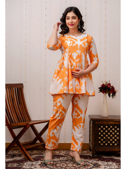 CELEBRAVO Abstract Printed Pure Cotton A-Line Maternity Kurta with Trouser