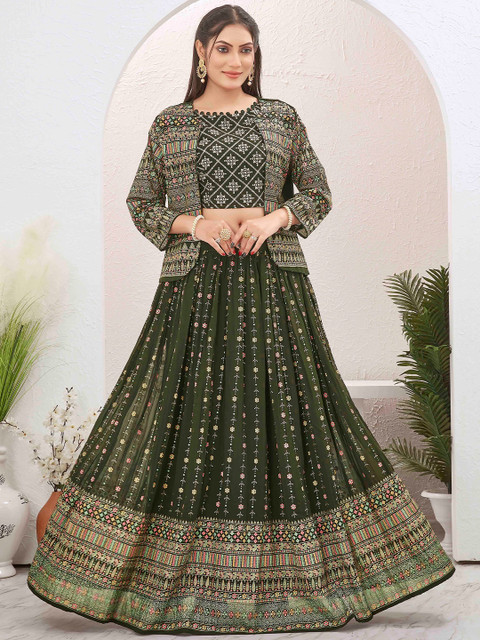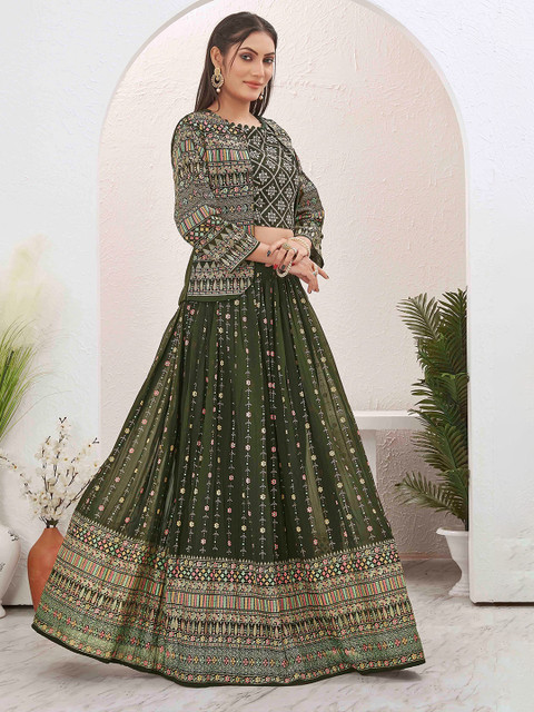 3 reviews for Chandbaali Ethnic Motifs Embroidered Sequinned Foil Print Ready To Wear Lehenga & Shrug