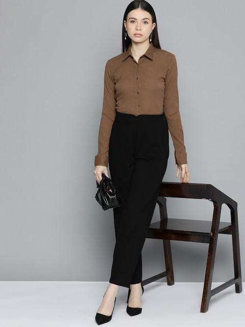The textured pattern gives the shirt a subtle yet stylish edge, making it stand out from regular black shirts. It’s versatile enough to be dressed up or down, whether for a formal meeting or a casual outing. The opaque fabric ensures full coverage, adding to its polished and classy look.