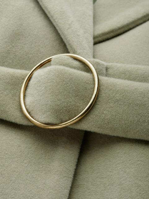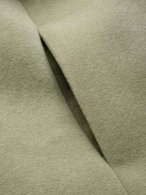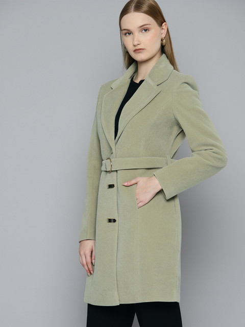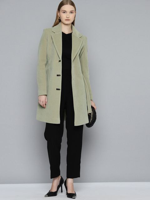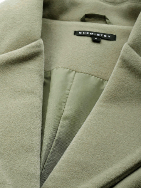 Green suede regular-fit overcoat, has a notched lapel, full sleeves, snap button closure, 2 pockets and nylon lining