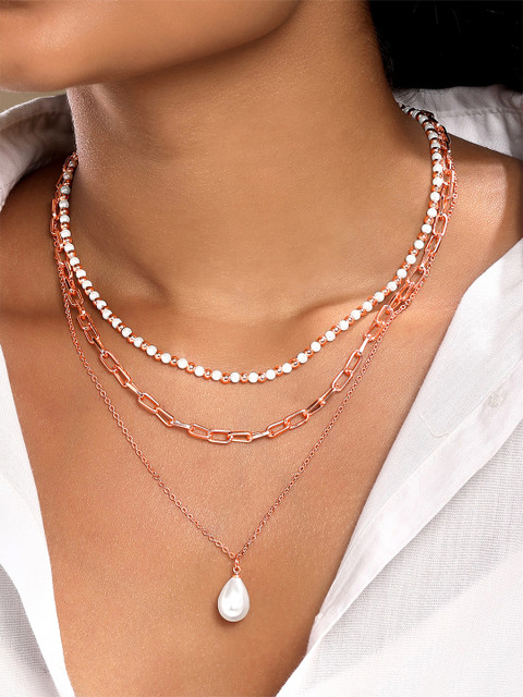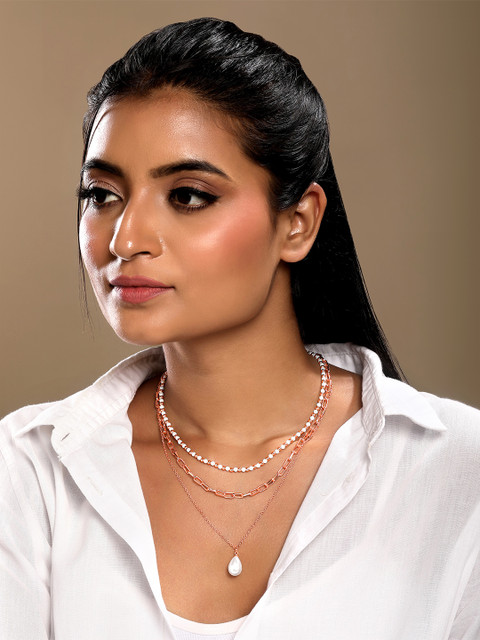 Rose gold and white layered necklace