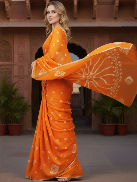 - Orange bandhani saree