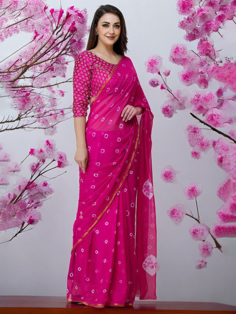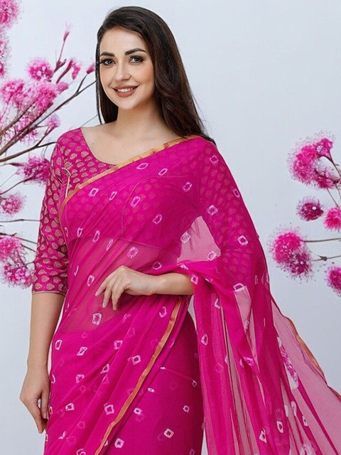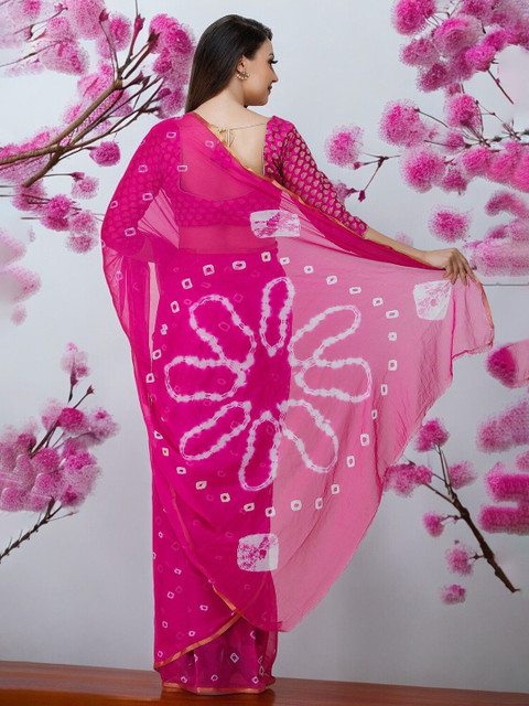 - Pink and white bandhani saree