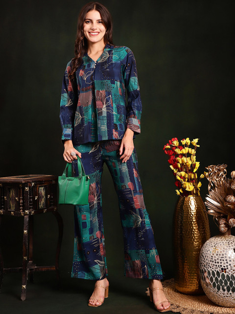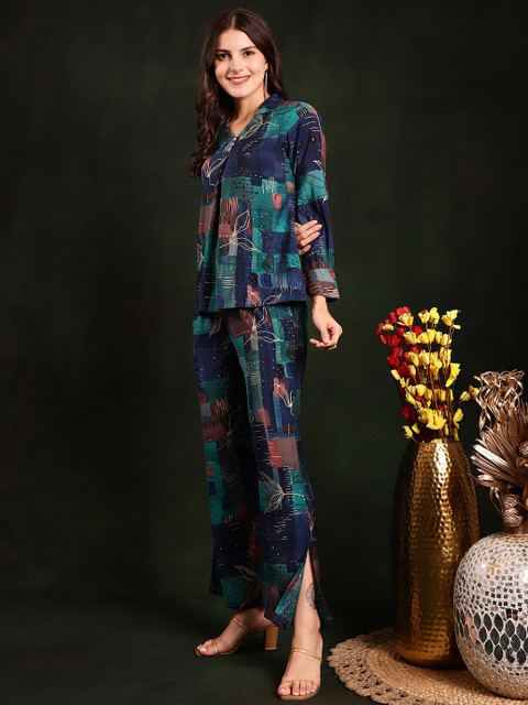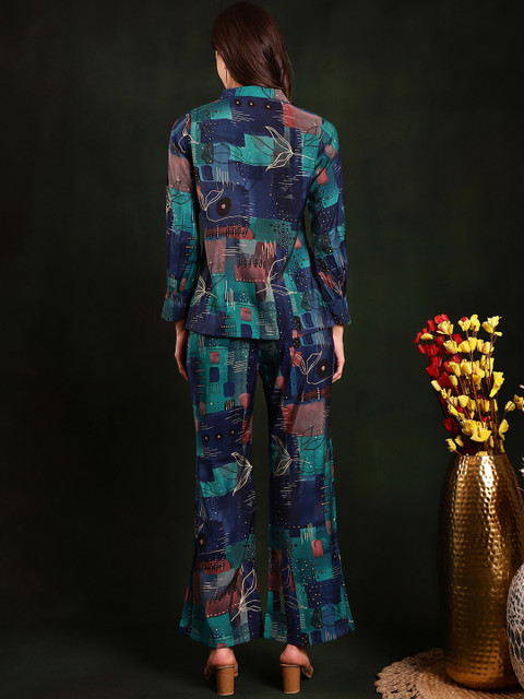 Blue floral printed mid-rise trouser, has partially elasticated waistband with slip-on closure and straight hem, 2 pockets