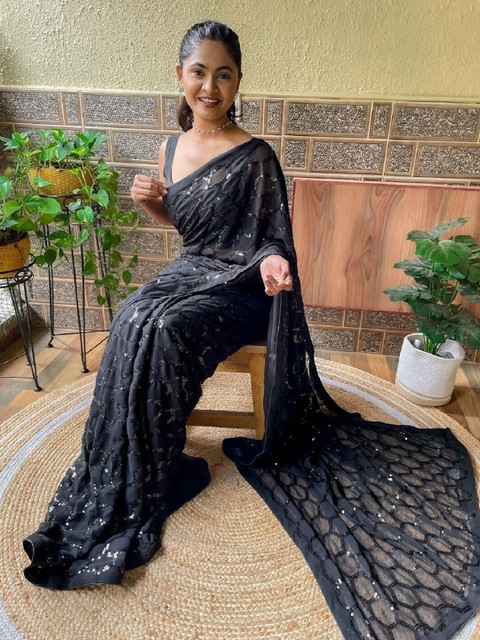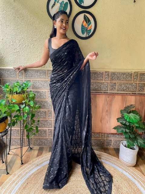 The blouse worn by the model might be for modelling purpose only. Check the image of the blouse piece to understand how the actual blouse piece looks like.