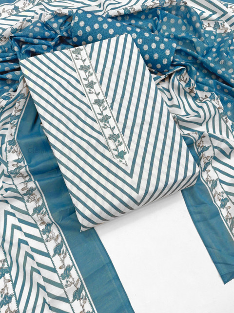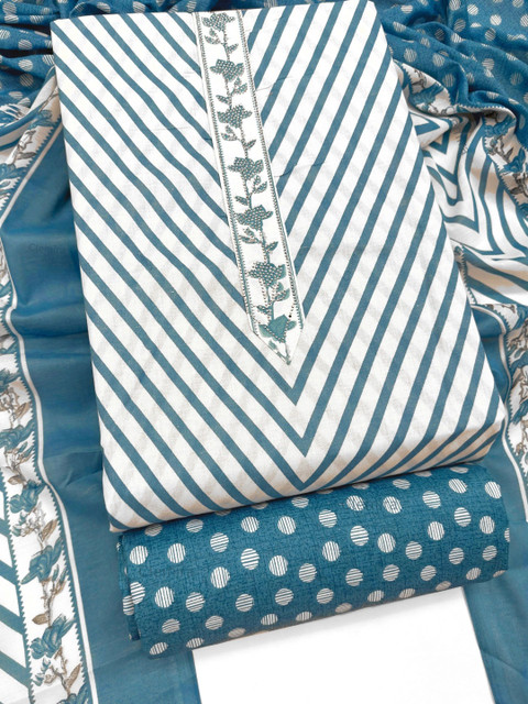 Blue Printed Unstitched Dress Material