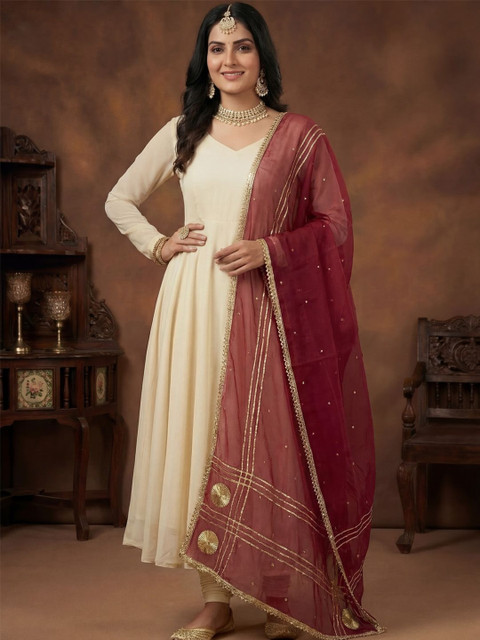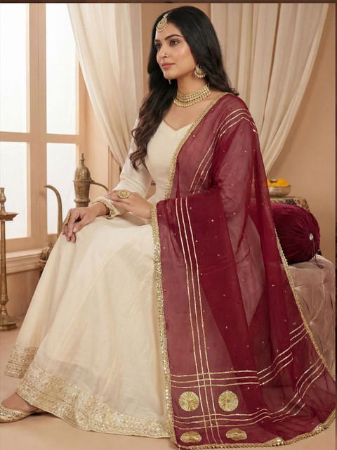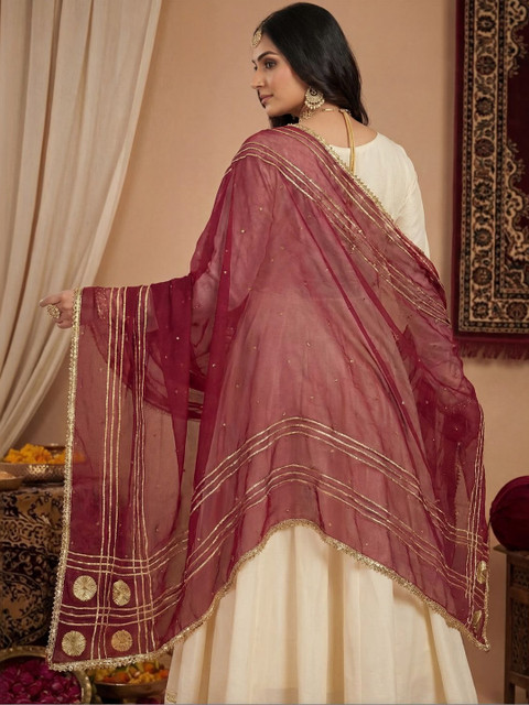 Maroon Ethnic Motifs Embroidered dupatta Gotta Patti, Embellished border