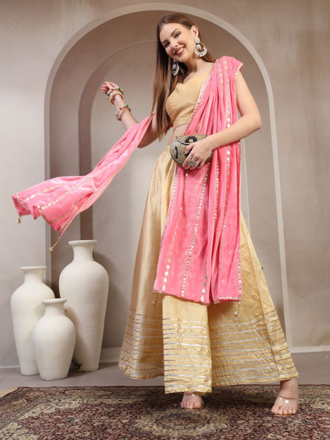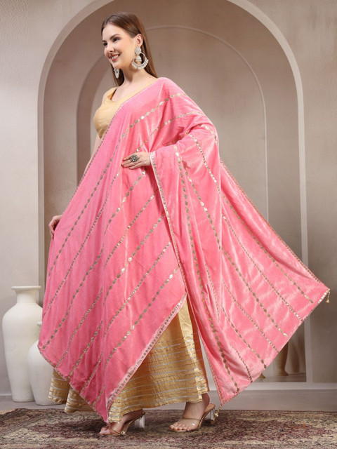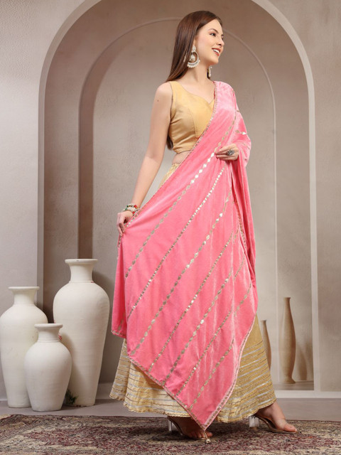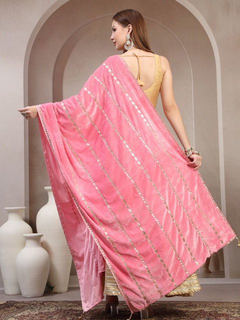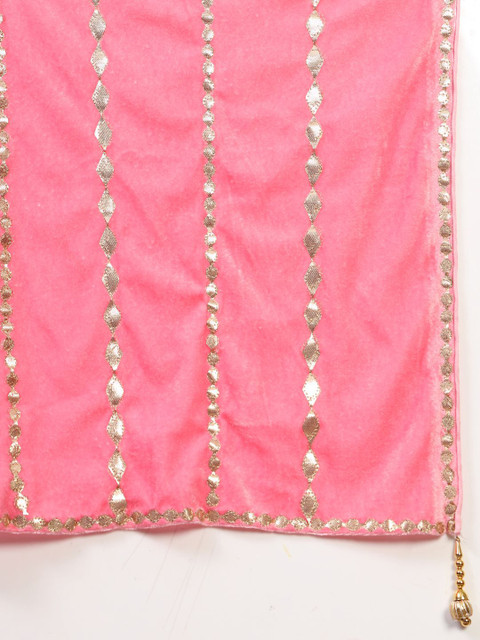 Pink and gold-toned geometric embroidered dupatta gotta patti, tasselled border