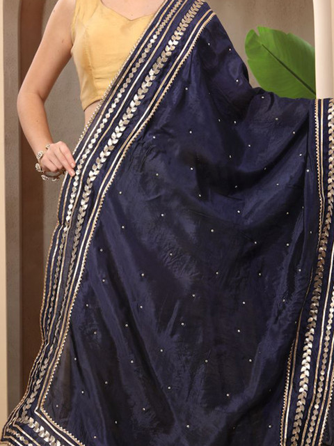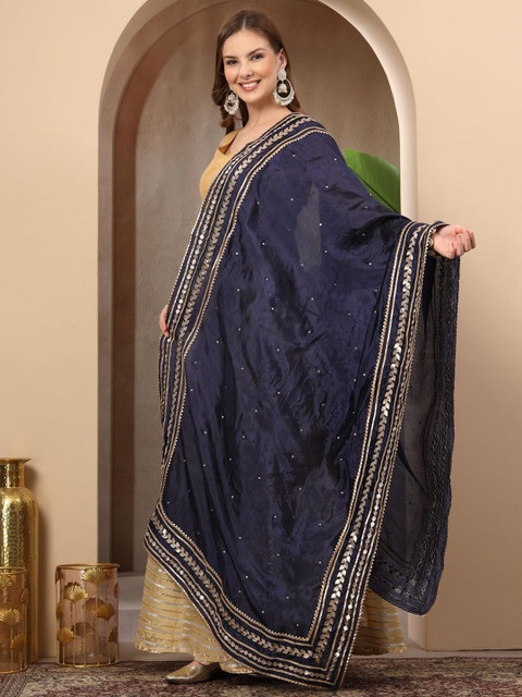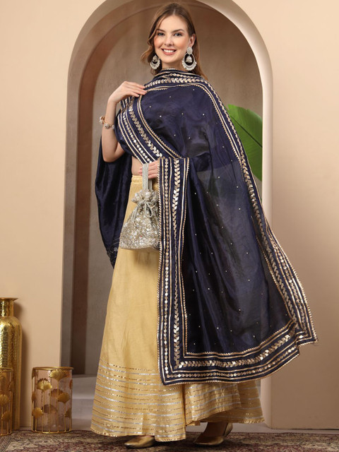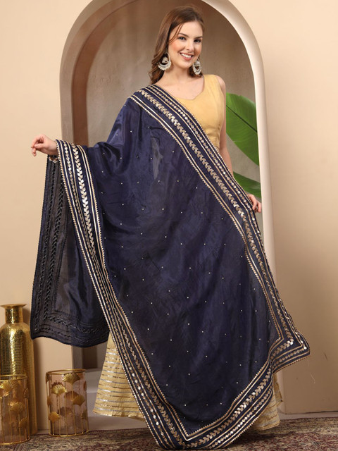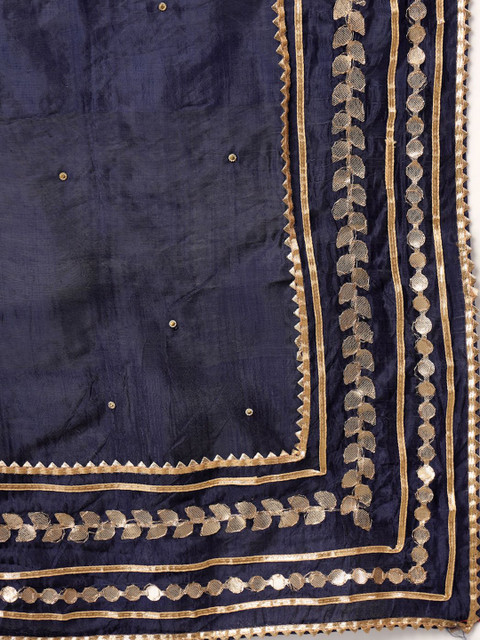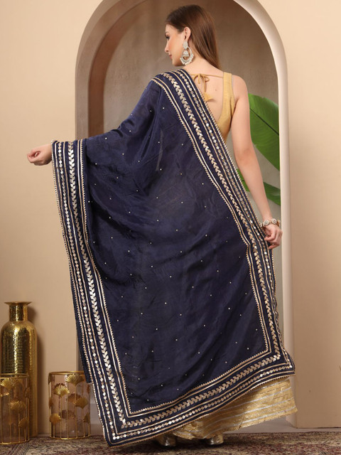 Navy blue and gold-toned abstract embroidered dupatta gotta patti, taping border