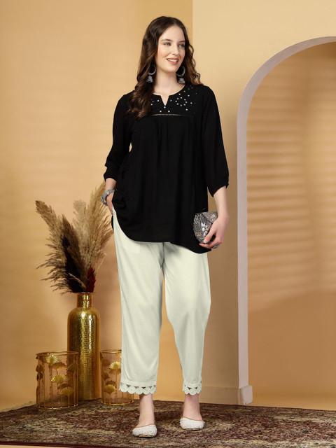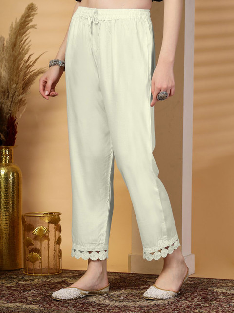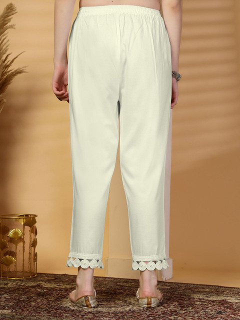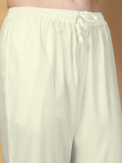 - Cream-coloured woven palazzos