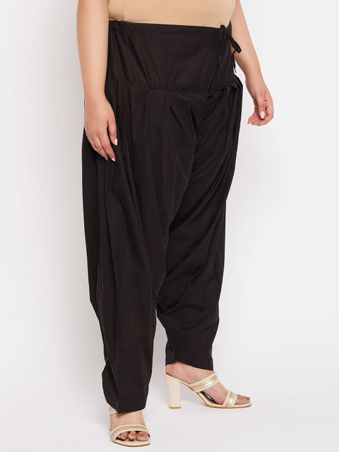 Black solid loose fit salwar has a waistband with drawstring closure