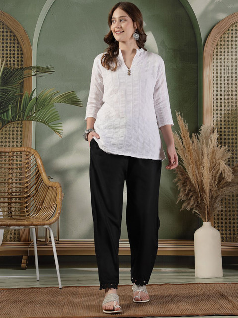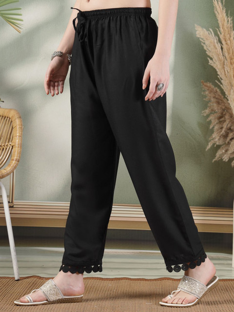 - Black woven palazzos