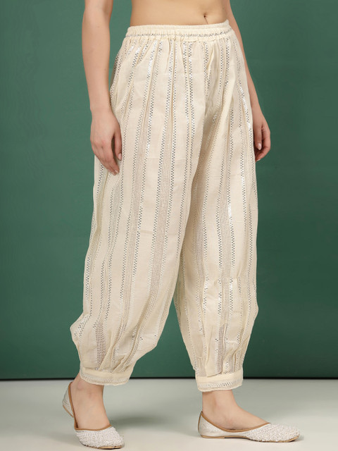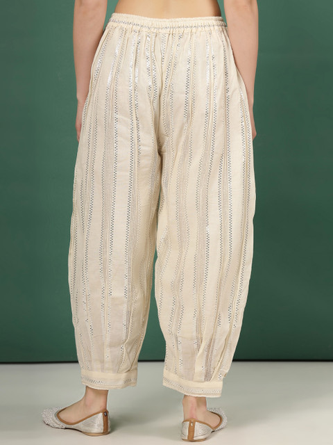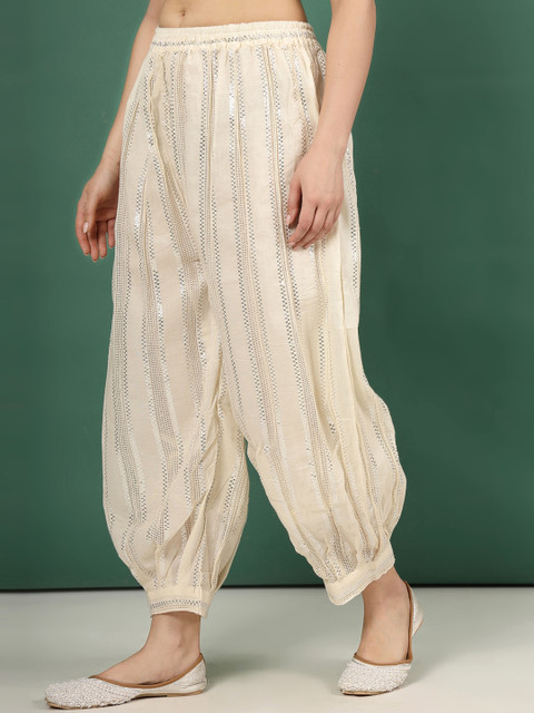 Cotton Silver Lurex Afghani SalwarLoose FitHas a Lining