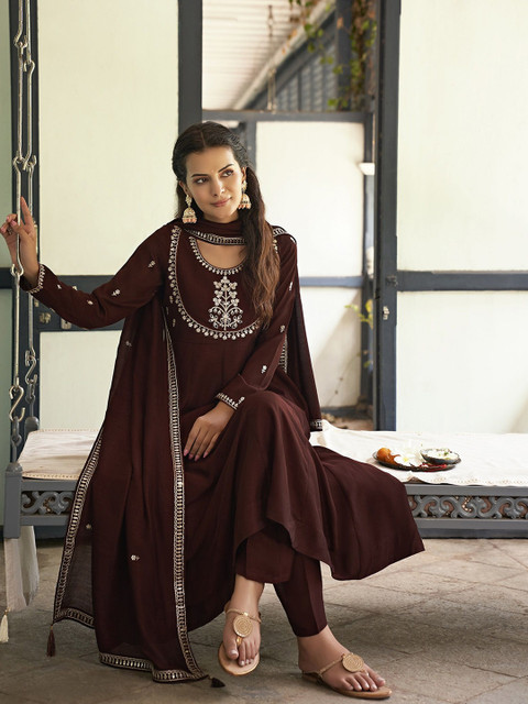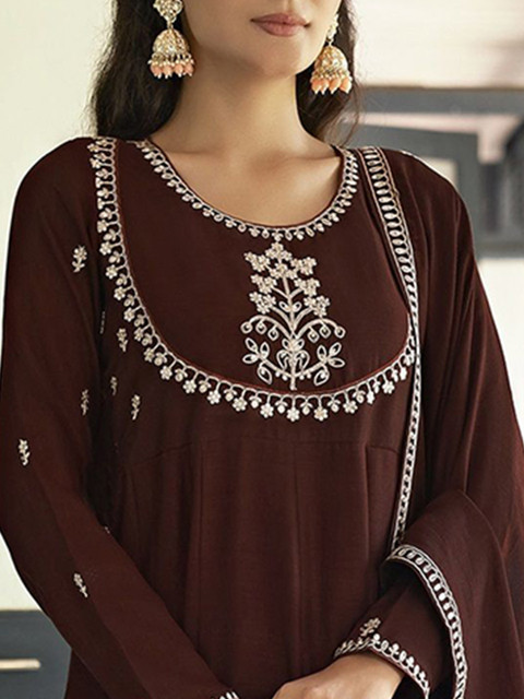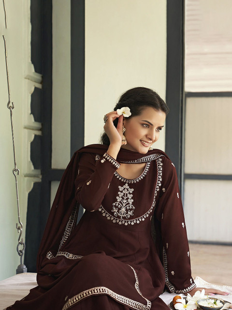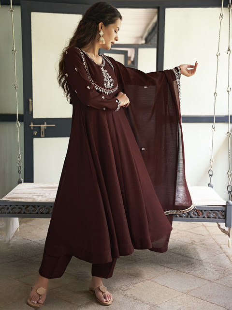Brown yoke design Kurta with Trousers with dupatta