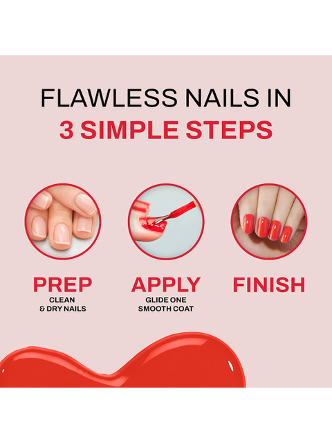 | How-to-Apply | Start with clean nailsTwist the cap and remove the excess product while removing the brush outPlace the brush on the centre part of the nail just below the cuticle and drag it belowRepeat the process on both sides of the centre line, leaving no empty spots on the nail |