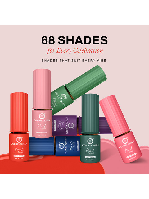 | Special Features | Give your nails the attention they deserve with our 7-Toxin-Free Nail Polish designed for both beauty and safety, which comes in 68 shades. Formulated without harmful chemicals, it ensures healthier nails without compromising on quality or performance.Developed with cutting-edge French technology, this nail paint for women offers a luxurious, professional-grade finish that enhances your nails effortlesslyThe glossy finish provides an elegant shine, adding sophistication and charm to any look. Its quick-dry formula saves time and prevents smudging, while the smooth one-coat application guarantees flawless, even coverage without needing multiple layersAvailable in vibrant, long-lasting colors, this glossy nail paint is the perfect choice to upgrade your style for any occasionQuick-dry formula: designed for convenience, this formula dries in moments, saving time and preventing smudges during applicationSmooth one-coat application: achieve an even and flawless finish with just one coat, reducing the need for multiple layers and making application hassle-freeVeganNon-toxicCruelty-free |
