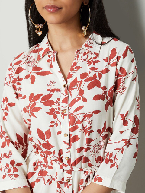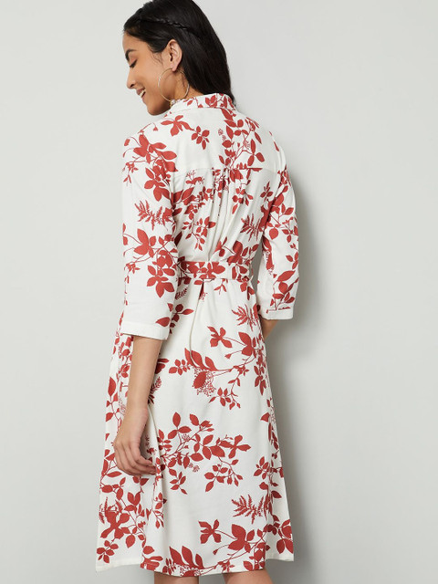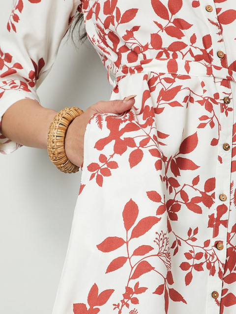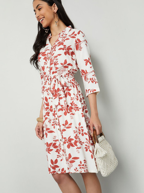 - White and White Floral Print Shirt dresses