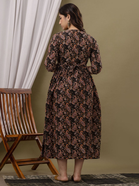 - Brown and black paisley print fitb and flare dress