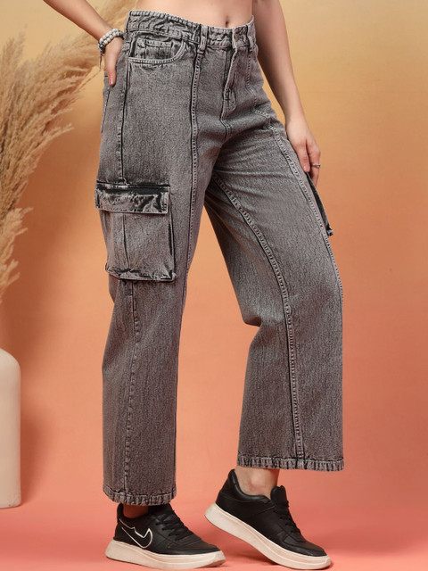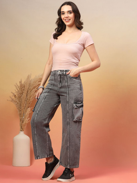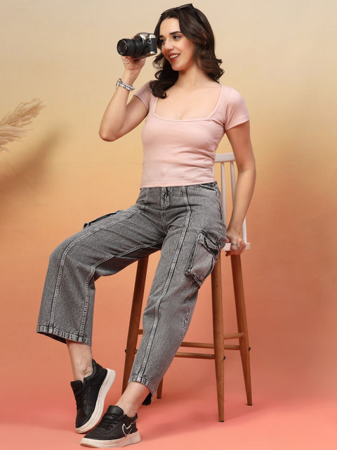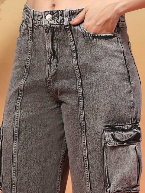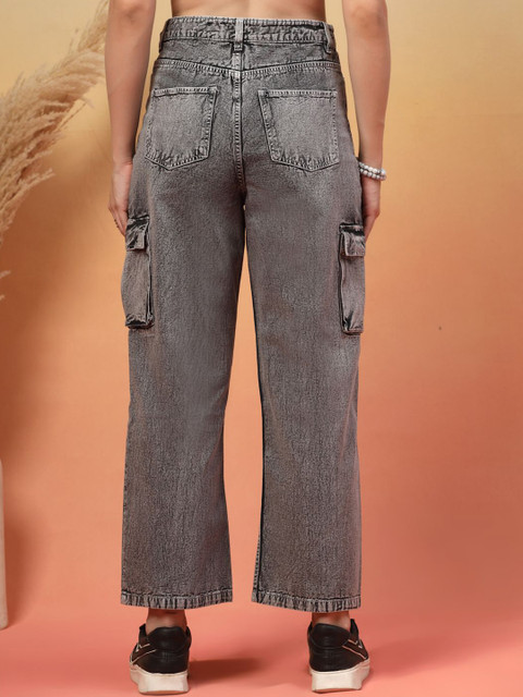 - Grey woven cargos jeans