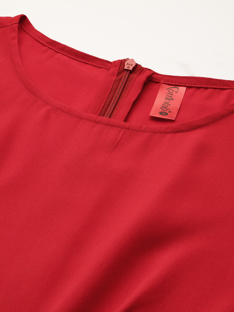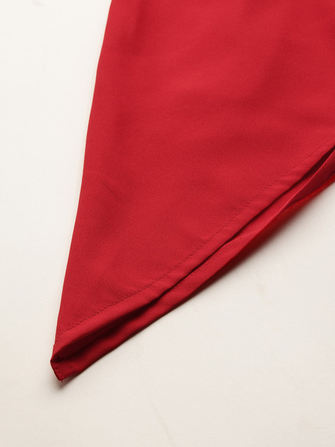 Red solid dhoti-style jumpsuit, has a round neck, sleeveless, concealed zip closure