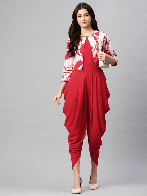 Comes with a red and white floral printed jacket
