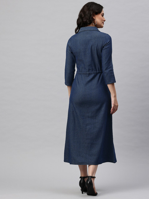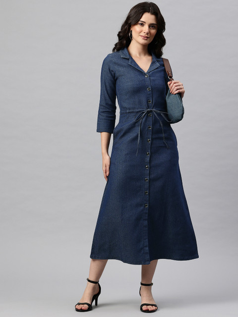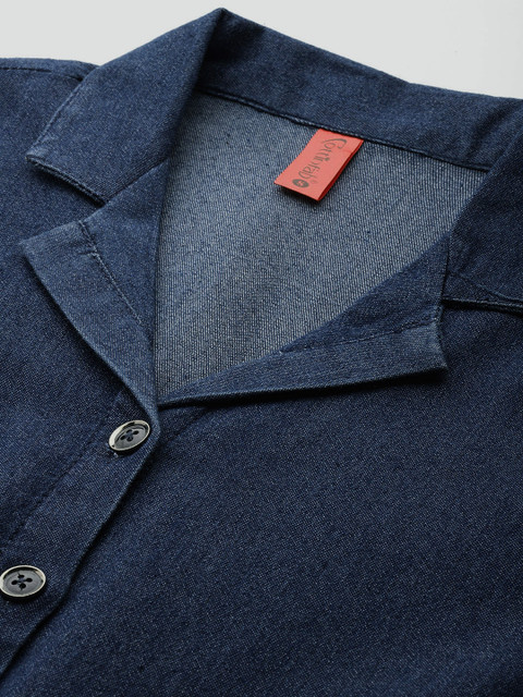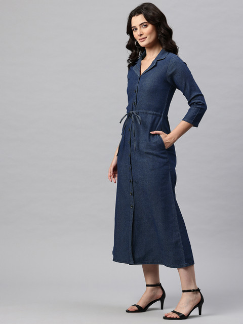 - Blue and dark sapphire solid shirt dress