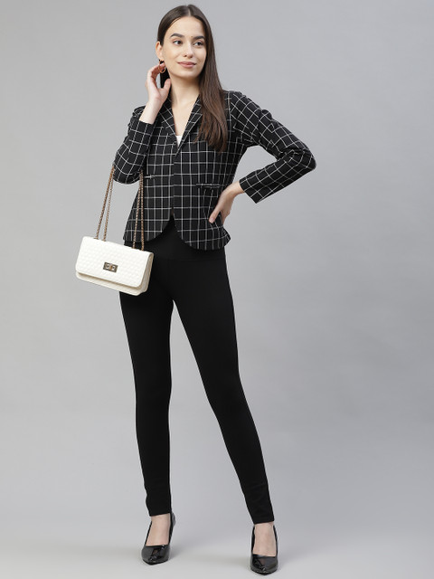 3 reviews for Cottinfab Women Black & White Checked Open Front Blazer