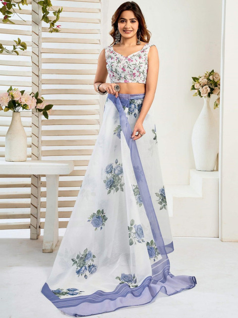 - Floral Printed saree with Printed Border border