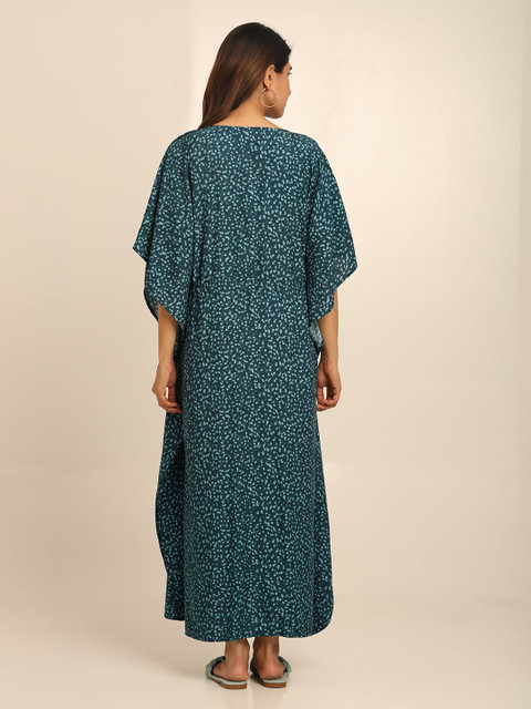 - Green and outer space floral print kaftan dress