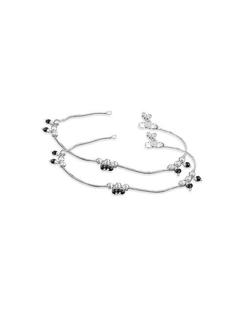 Silver toned and black anklet