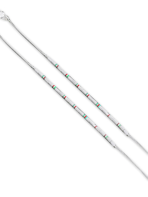 Silver toned, red and green anklet
