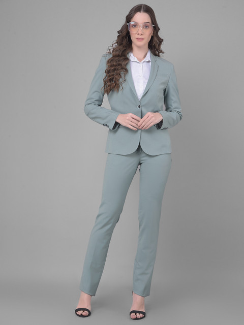 Green solid slim-fit formal blazer, has a notched lapel, long sleeves, single-breasted with button closure, two flap pockets, one welt pocket and a ventless back hem